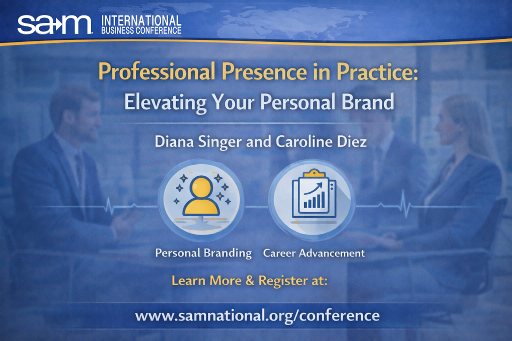 Join us at the SAM International Business Conference for this interactive virtual workshop focused on professional growth and career readiness. Participants from anywhere in the world can engage in real-time discussion and skill-building activities designed to strengthen professional presence.