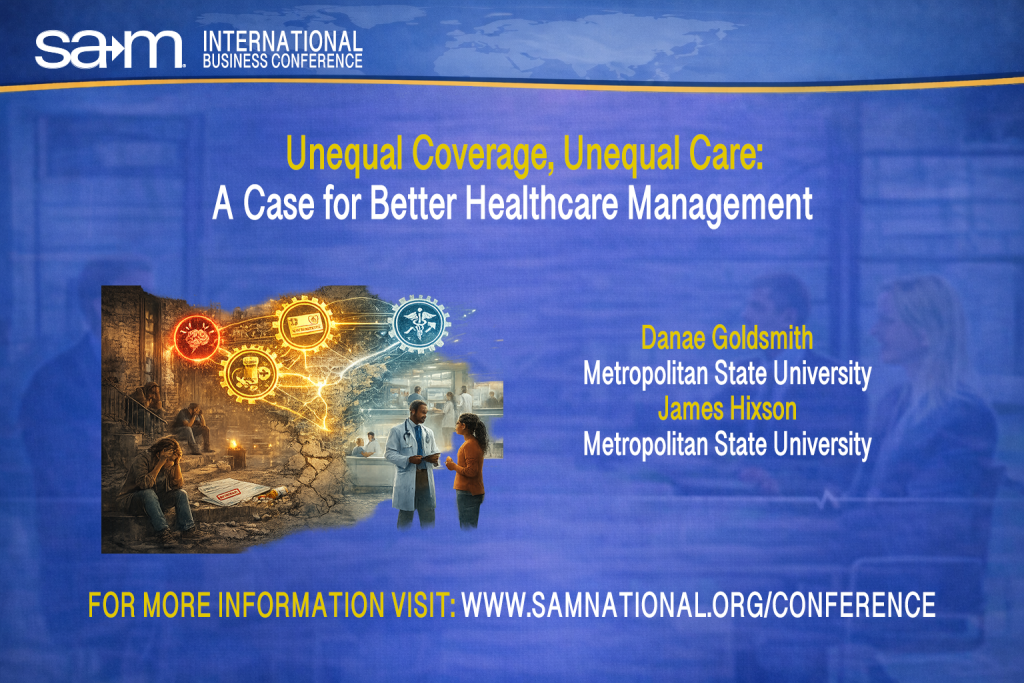Join us at the SAM International Business Conference to engage with this research. This in-person presentation invites discussion on how healthcare management can address coverage gaps and improve behavioral health equity through smarter, more intentional system design.